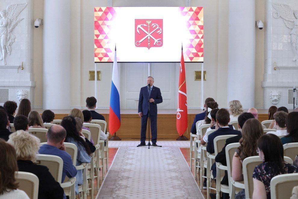 Перед церемонией вручения премий Актовый зал Смольного был почти заполнен. Сюда пришли не только сами лауреаты, но и их родители. Взрослые, похоже, волновались перед вручением значительно больше, чем дети. Наконец, в Актовый зал вошел губернатор Петербурга Александр Беглов и вице-губернатор Борис Пиотровский, и церемония началась.