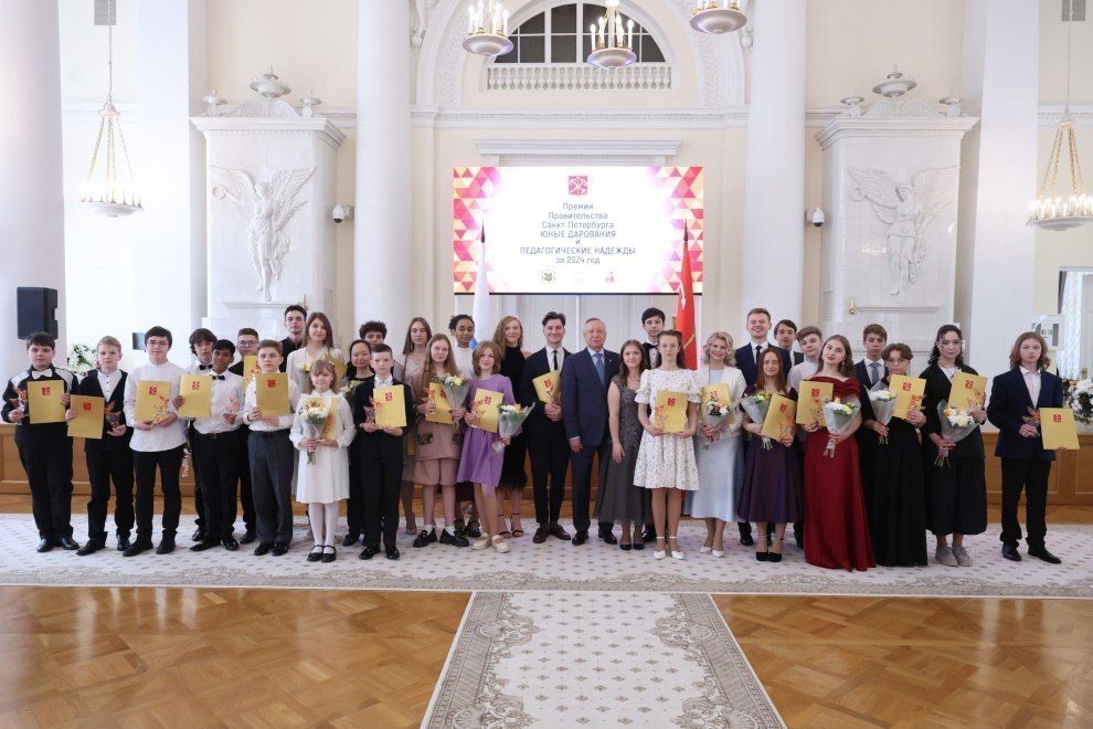 В Смольном 30 мая прошла торжественная церемония вручения премий правительства Петербурга «Юные дарования» и «Педагогические надежды». Их получили лучшие юные музыканты, танцоры, певцы и художники города, а также их учителя.