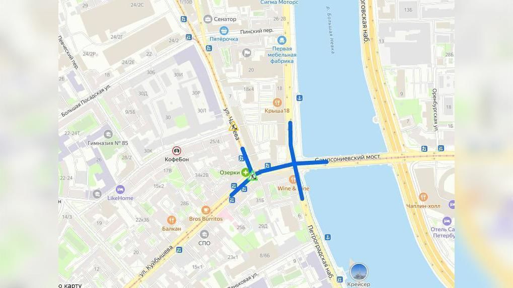 С 2 июня по 7 июля ограничат проезд по улице Куйбышева от Каменноостровского проспекта к Сампсониевскому мосту. Движение закроют от моста к улице Чапаева по улице Куйбышева. Также закроют перекресток улиц Чапаева и Куйбышева.