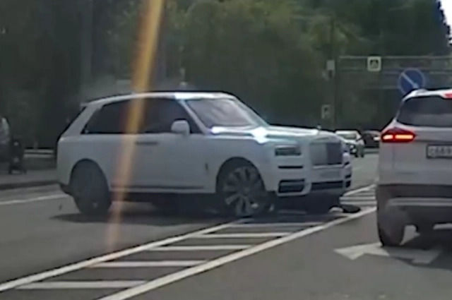 Момент аварии попал на видео: водитель люксового автомобиля совершил резкий разворот перед двигавшимся мотоциклистом на Harley Davidson. Байкер врезался в бок внедорожника, после чего Rolls-Royce, не снижая скорости, проехал по пострадавшему, сначала один раз, затем второй.