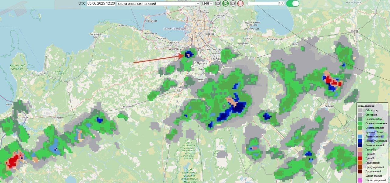 Вчерашний день в Петербурге прошёл с грозами и ливнями, сообщил сегодня в своём телеграм-канале главный синоптик города Александр Колесов. В прогнозе накануне указывали, что осадки будут в отдельных районах, рассчитывая на юг города.