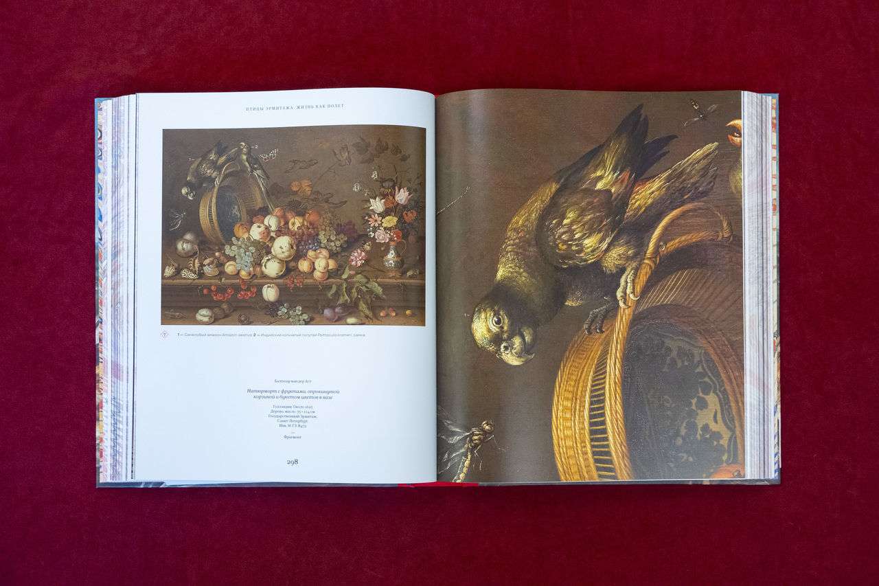 Символично, что презентация новой книги состоялась в Павильонном зале Эрмитажа, где находятся самые знаменитые часы страны «Павлин». В самом же музее только в коллекции российского и западноевропейского искусства можно встретить около 1000 птиц, запечатленных на картинах и гравюрах, в мозаике, фарфоре и тканях. Детализированные изображения птиц в книге дополняют статьи и эссе научных сотрудников Эрмитажа и учёных-орнитологов университета.