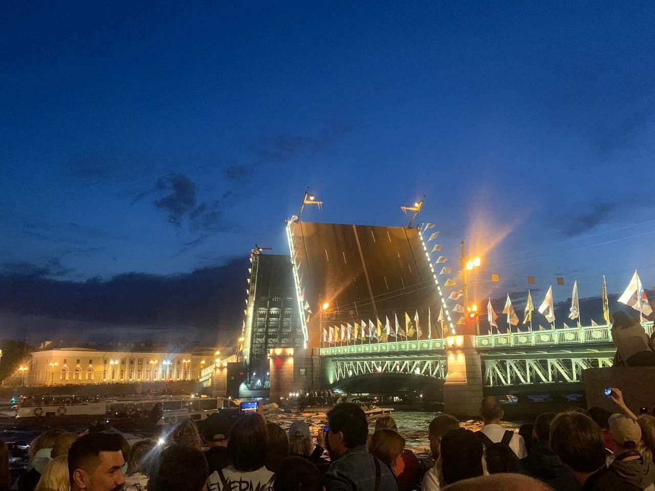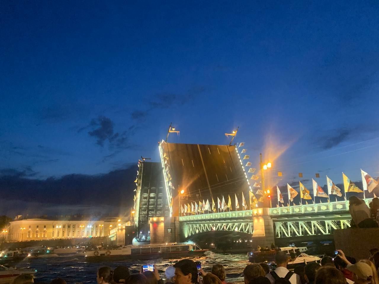 В ночь с 7 на 8 июня в Петербурге состоялось звуковое шоу «Поющие мосты» в честь 226-летия Александра Сергеевича Пушкина. Перед разводкой Дворцового моста зрители традиционно услышали Гимн Великому городу Рейнгольда Глиэра. А в честь великого русского поэта над Невой прозвучали произведения Петра Чайковского «Концерт для фортепиано с оркестром №1» и «Времена года». Июнь. Баркарола», а также романс Антона Рубинштейна «Ночь» на стихи Александра Пушкина в исполнении Народного артиста России, легендарного тенора Константина Плужникова.