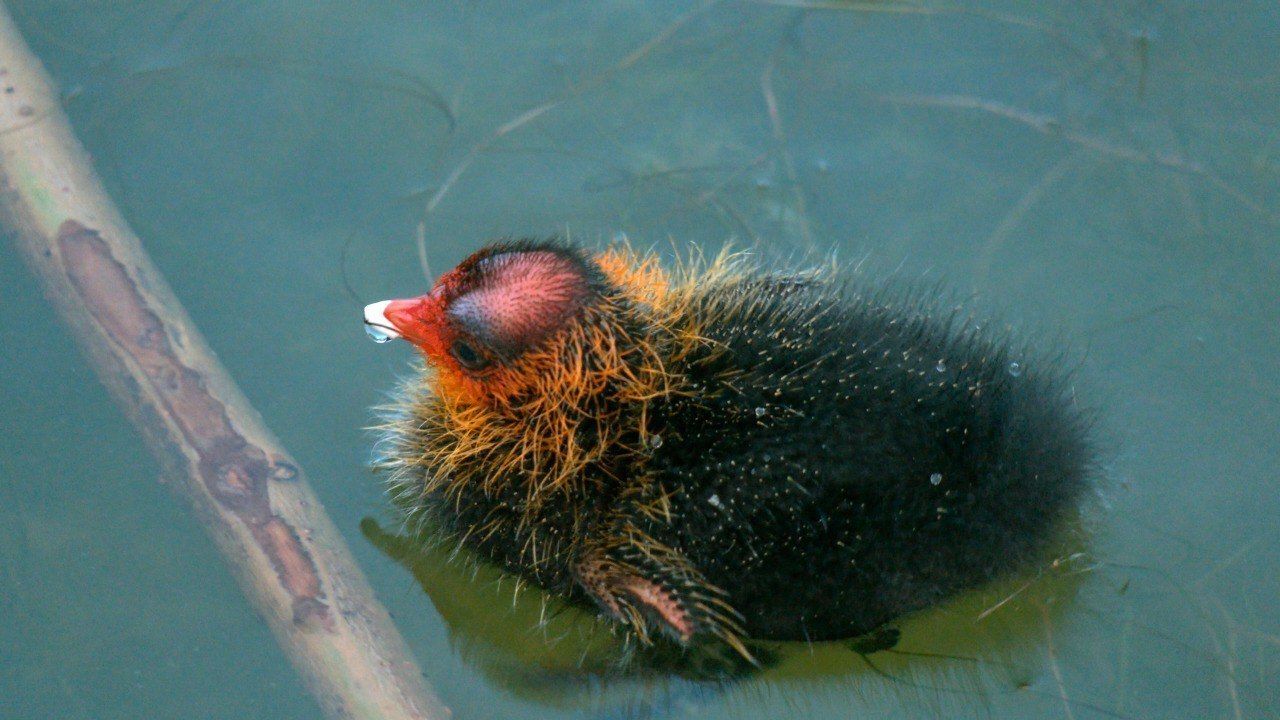 Специалист назвал птенцов «пернатыми одуванчиками», отметив, что в первые дни жизни детеныши лысухи имеют удивительную окраску.