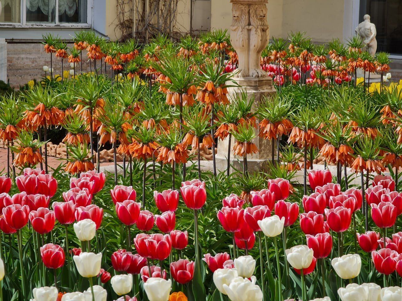 Под этими листьями располагаются крупные оранжево-красные цветки, которые, свисая вниз, образуют некое подобие короны. Отсюда и старинное название растение «императорская корона».