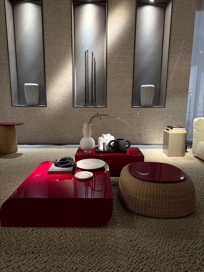 Самыми модными цветами оказались бордо и терракота – насыщенный тёмно-красный и глубокий коричнево-оранжевый. Эти благородные природные оттенки незаслуженно редко встречаются в интерьере, но Миланский салон – 2025 наконец-то оценил по достоинству их стать и томность.