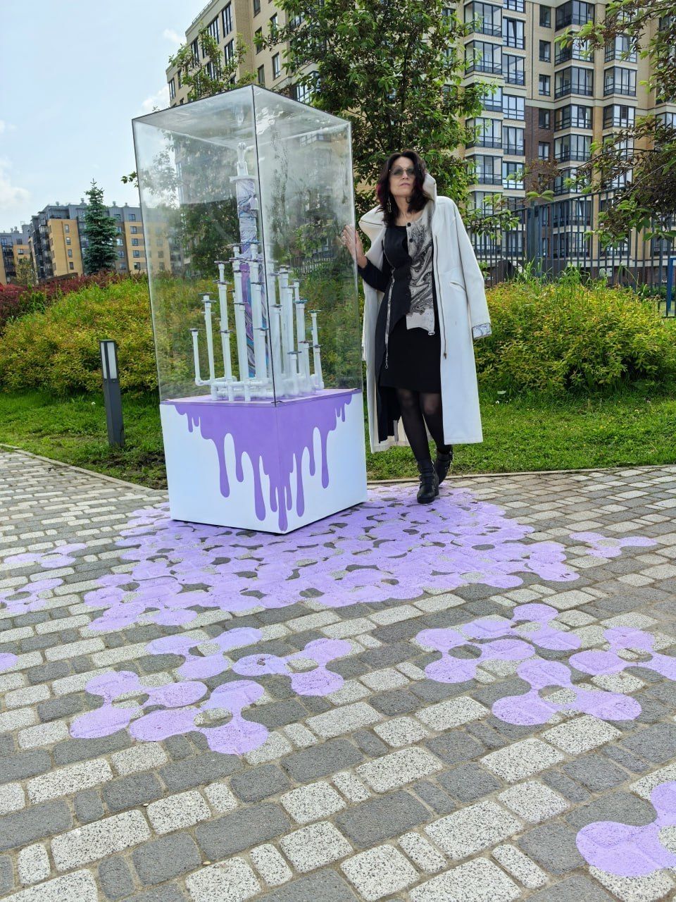 – Да, здесь двойное значение. «Текущий» как «нынешний», «сегодняшний». Это про здесь и сейчас. Спальные районы часто не имеют глубокой истории. Она начинается с их застройки. Проект помогает жителям творить свою историю прямо сейчас, закладывая культурный слой. Еще «Текущий» как «перетекающий», «движущийся». Это связано с моей авторской техникой «биотипии», где я работаю с течением краски по воде. Такая система позволяет цветам не только смешиваться, но и взаимно усиливать друг друга. Когда они текут по воде, они не подавляют, а наоборот, дополняют, создавая гармоничное и выразительное сочетание. В результате получается красивая история. Этот процесс происходит постепенно, когда находишь созвучие между цветами. Город – это своего рода хаос. И в этом хаосе хочется выявить закономерности, привнести культурный и художественный порядок. Аналогично, с помощью «биотипии» я сначала создаю хаос из цветовых потоков, а затем структурирую его, формируя упорядоченную композицию. «Текучесть» проецируется и на сам проект. Бульвар Белых Ночей превращается в реку эмоций, по которой люди движутся.