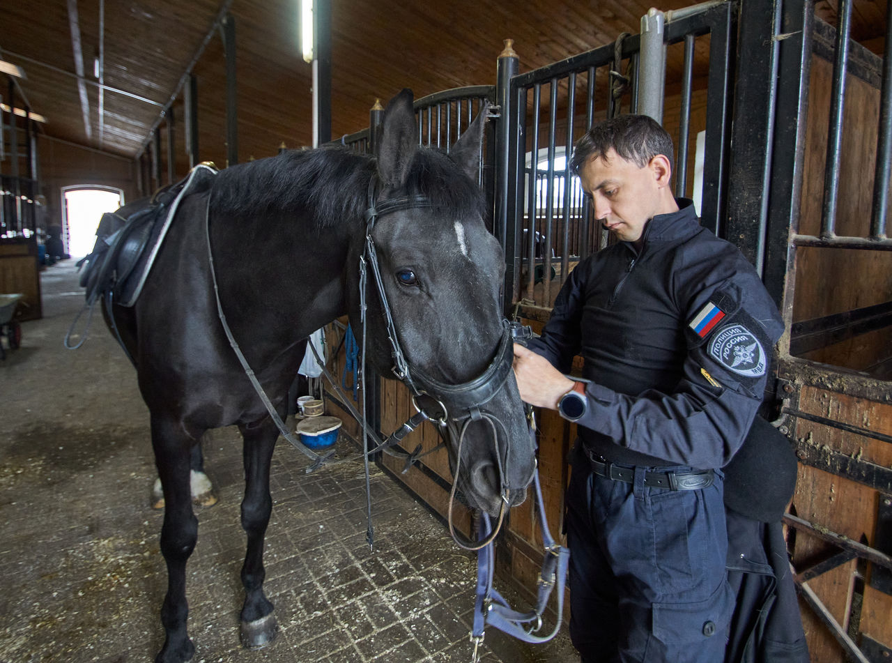 «Сотрудник при поступлении назначается на три месяца на стажировку. И за это время он получает первоначальные навыки и полицейского, и кавалериста, – рассказывает взводный. – Уже к середине этого срока мы понимаем – сможет этот человек нести службу с лошадью или нет. Если есть желание и способности – за три месяца он сядет в седло и станет среднего уровня всадником. И мы со своей стороны сделаем всё, чтобы ему помочь».