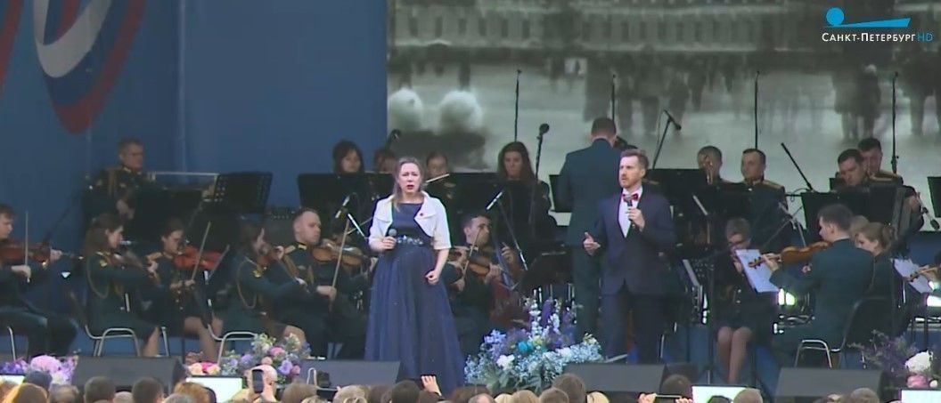 В программе прозвучали не только классические произведения, но и современные хиты о России и Петербурге, а также песни, посвящённые Великой Победе, в исполнении симфонического оркестра «Семёновский».