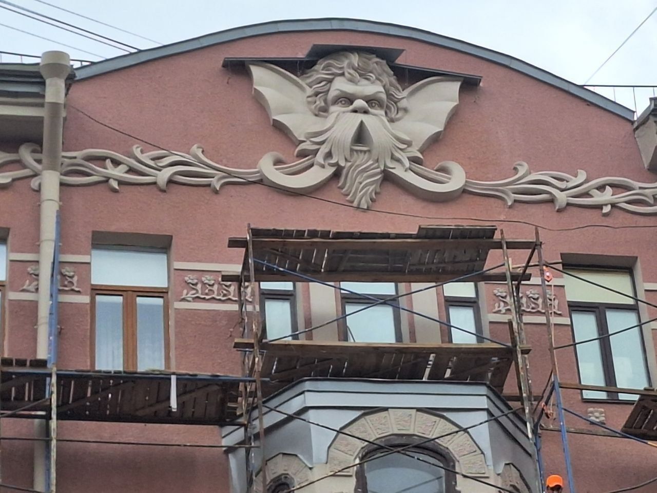 Возвращение на фасад доходного дома Карла Бальди стало возможным благодаря капитальному ремонту дома. По заключению специалистов комитета, большое количество лепного декора было утрачено. В том числе и огромный маскарон, с которым связана местная легенда: бог дождя «хмурится» при приближении непогоды. Современным скульпторам эту особенность удалось воссоздать за счет усиления теневого эффекта, появляющегося когда над зданием сгущаются тучи.