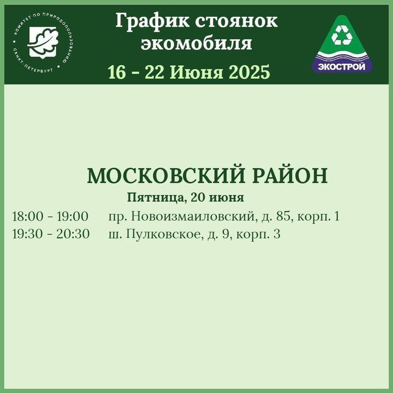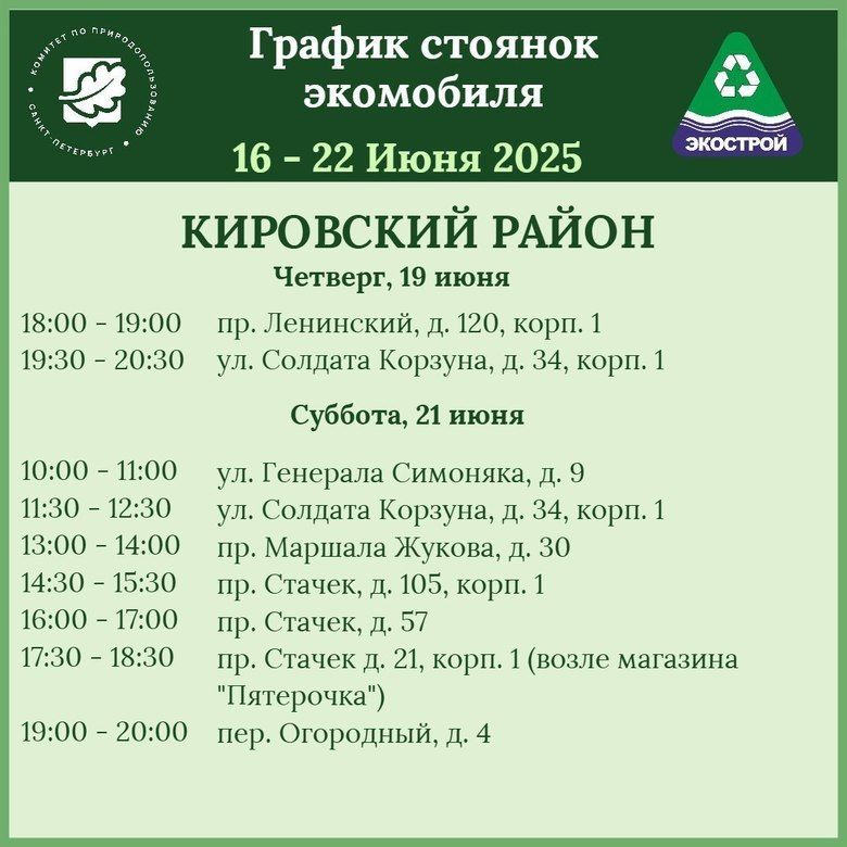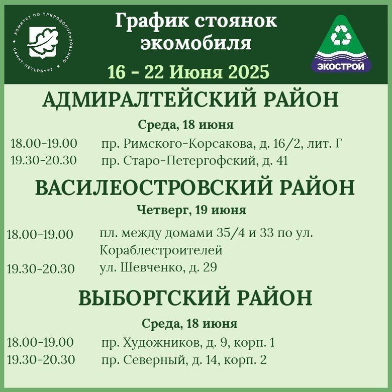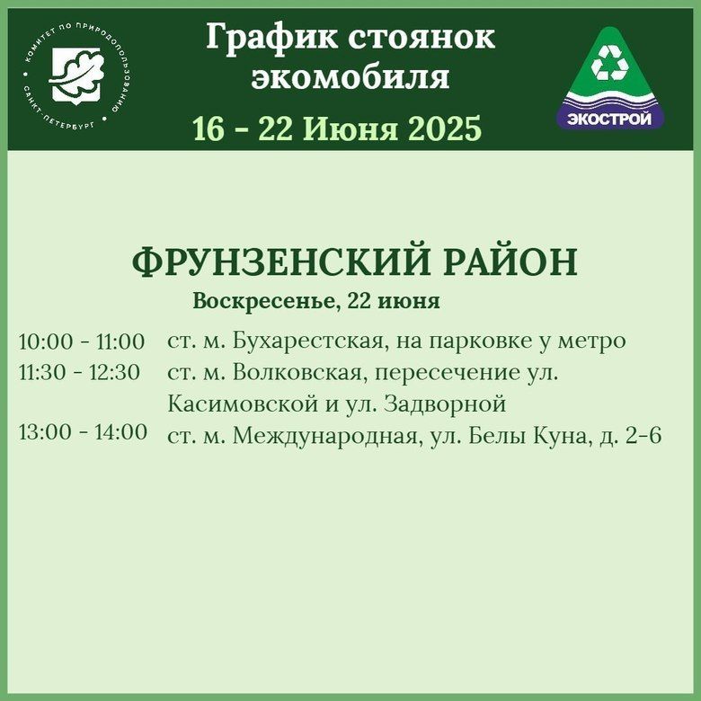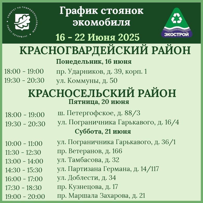 «За неделю экомобиль не всегда успевает охватить все районы, – говорится в сообщении. – Полное расписание, расположение всех точек сбора и весь перечень принимаемых отходов всегда доступны на сайте».