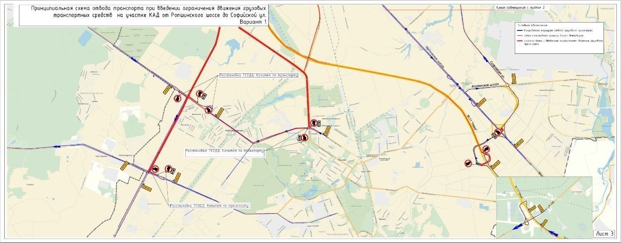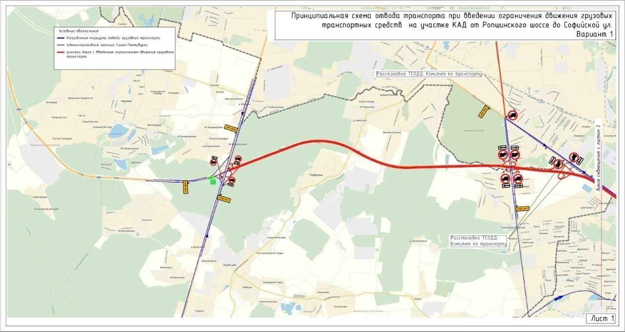 Ограничения затронут КАД (от Ропшинского шоссе до Софийской улицы), Пулковское шоссе (от Красносельского до Дунайского проспекта), Петербургское шоссе (от Пулковского до Кузьминского шоссе) и Витебский проспект (от Московского до Петербургского шоссе).