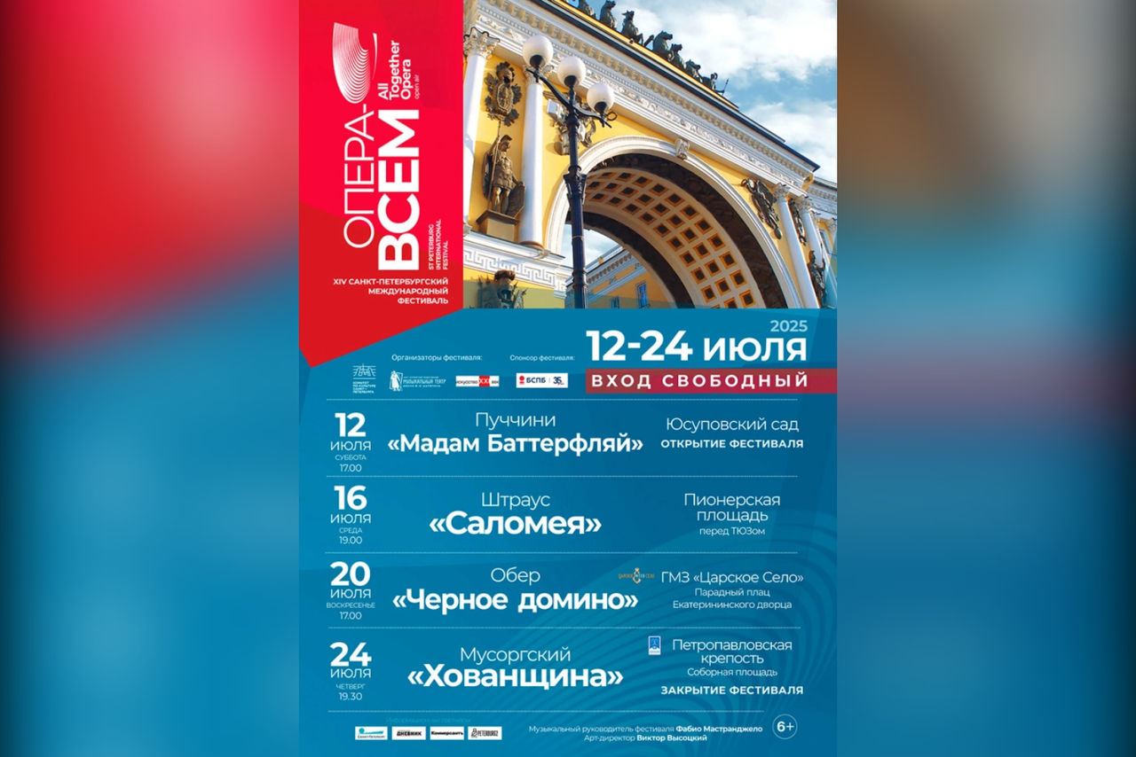 С 12 по 24 июля 2025 года Санкт-Петербург станет центром оперного искусства благодаря XIV Международному фестивалю «Опера – всем». Мероприятие пройдет при активной поддержке Комитета по культуре Санкт-Петербурга.