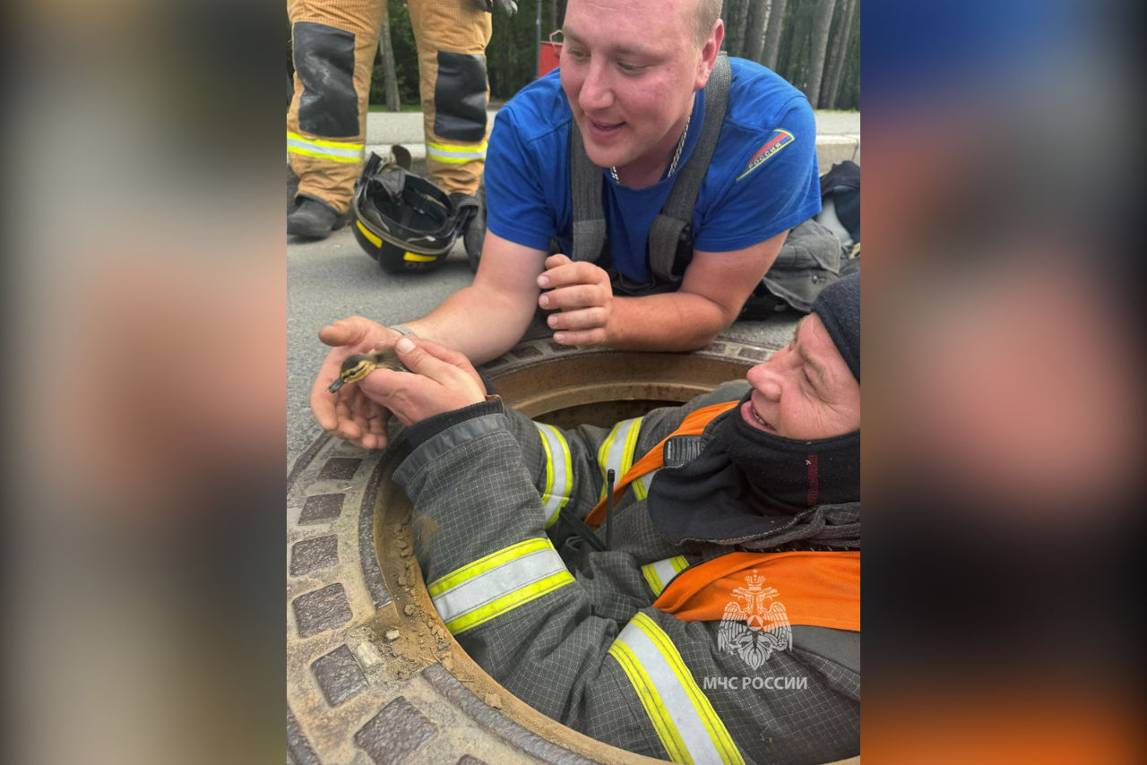 В Петроградском районе Санкт-Петербурга сотрудники МЧС России спасли двух утят, которые провалились в канализационный люк. Маленьких птиц благополучно вернули их взволнованной маме-утке.