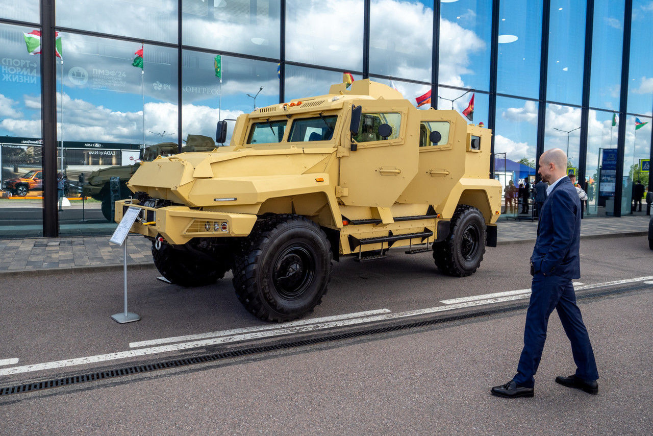 На открытии Петербургского международного экономического форума участникам представили специальный бронированный автомобиль СБМ ВПК-233136 семейства «Тигр» в комплектации «Рейд», пишет ТАСС.