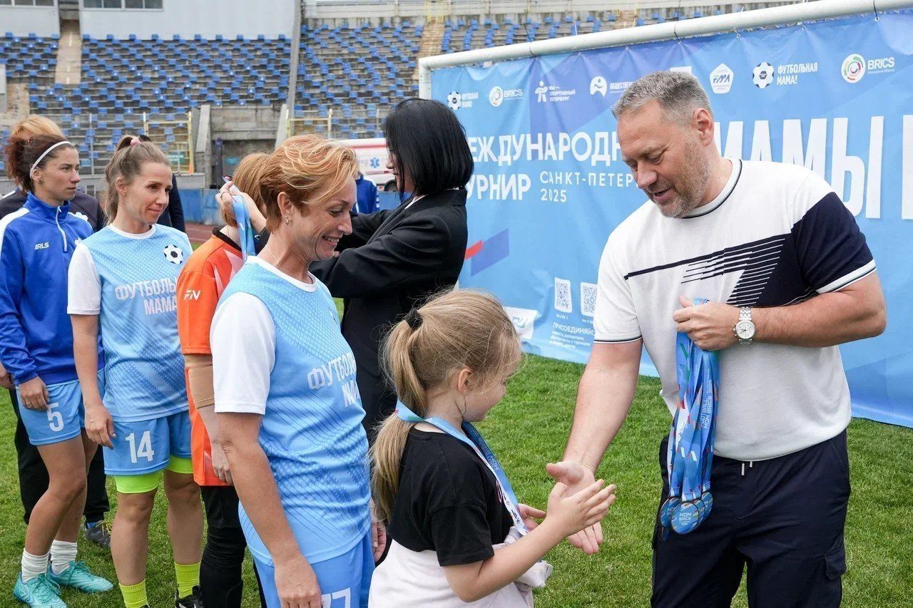 В финале футбольного турнира «Мамы БРИКС» встретились сборные России и Ленинградской области. Национальная команда победила со счётом 6:0. Президент федерации футбола Санкт-Петербурга Александр Бельский принял участие в церемонии награждения призёров.