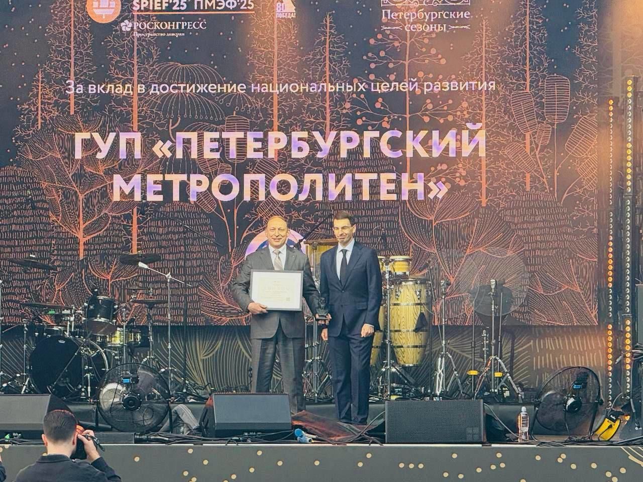 Петербургский метрополитен получил премию «За вклад в достижение национальных целей» из рук полномочного представителя президента РФ в ЦФО Игоря Щеголева – метрополитен удостоен награды за вклад в развитие транспортной инфраструктуры, экологические инициативы и социальные программы.