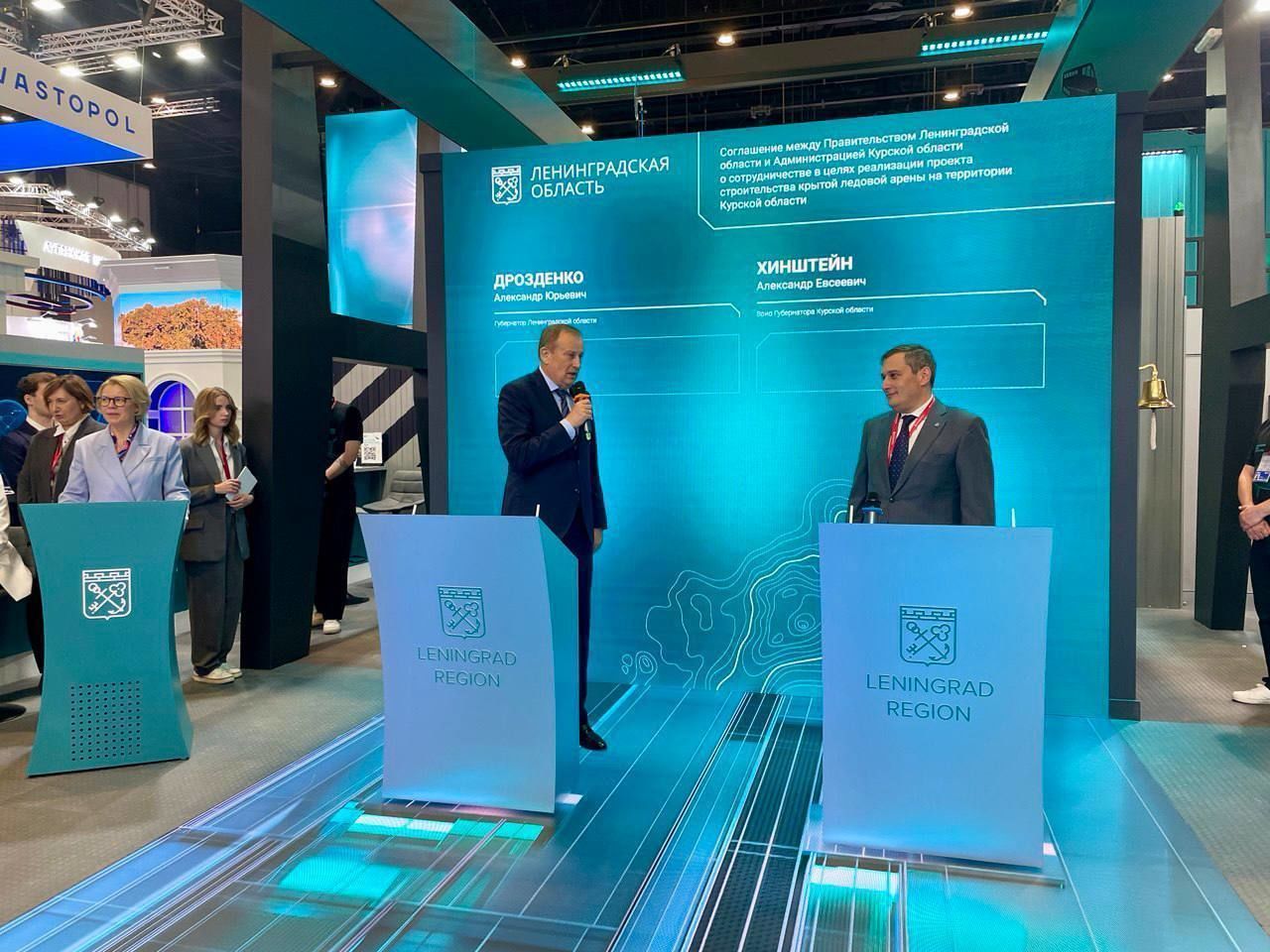 Ленинградская область поделится своим строительным опытом с Курской областью. Александр Дрозденко и Александр Хинштейн подписали соглашение о сотрудничестве в рамках ПМЭФ, касающееся реализации проекта по строительству крытой ледовой арены в Курчатове.
