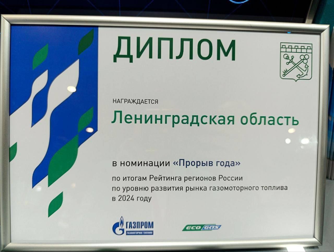 Ленобласть впервые вошла в топ-5 рейтинга регионов России по уровню развития рынка газомоторного топлива. Регион получил диплом на ПМЭФ, сообщили сегодня в пресс-службе областной администрации.
