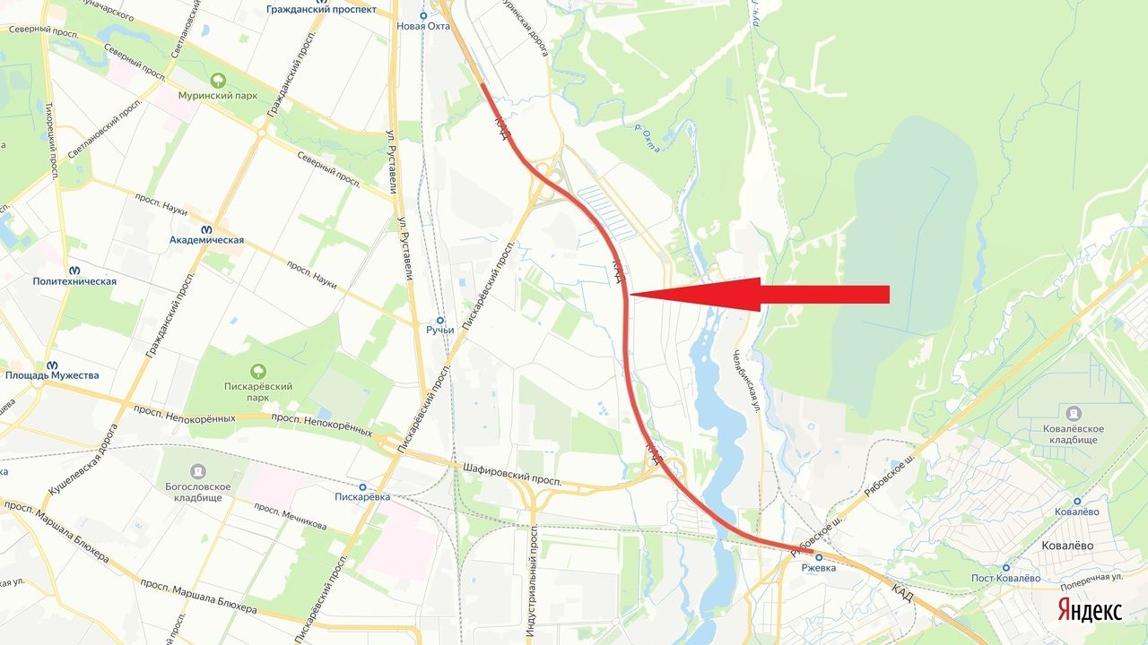 В Северной столице на Кольцевой автодороге между развязками с Рябовским шоссе и автодорогой Санкт-Петербург – Матокса перекроют одну полосу движения транспорта.