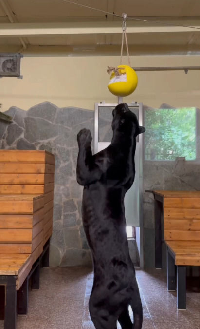 В пресс-службе Ленинградского зоопарка 19 июня продемонстрировали, как ягуар Ричард играет с большим шаром.