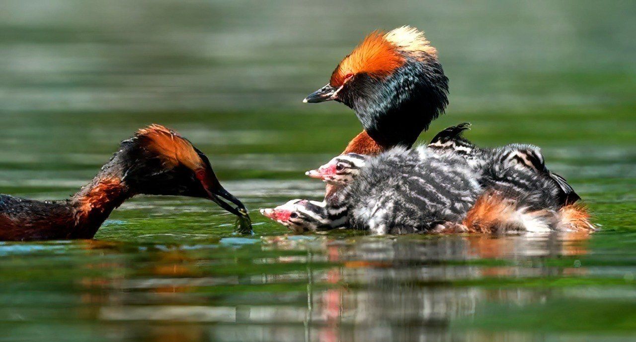 Красношейные поганки успешно выводят потомство в Гатчинском парке