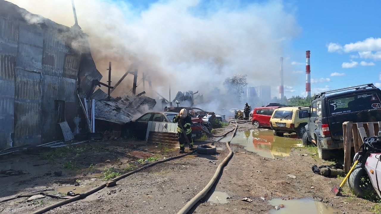 Ранее сообщалось, что на Пискаревке горит гаражный кооператив. На тушение отправлен поезд с водой.