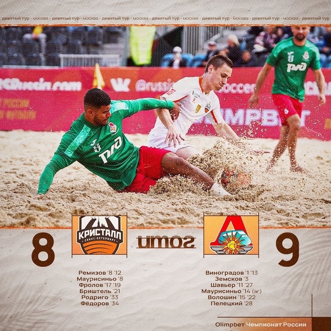 «Кристалл» в чемпионате России по пляжному футболу проиграл «Локомотиву» и опустился на четвертое место в турнирной таблице