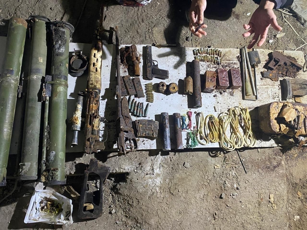 Прибывшие полицейские насчитали три ручные противотанковые гранаты, два пистолета ТТ, снайперскую винтовку, охотничий карабин, более одного килограмма тротила и несколько сот патронов. Обнаруженное оружие находилось в сильном коррозийном состоянии и направлено на экспертизу.