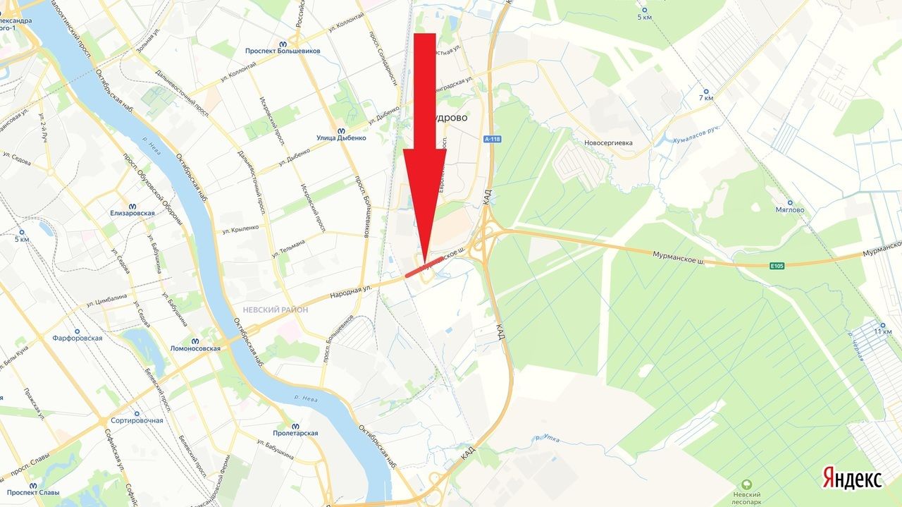 Дорожные работы на трассе «Кола» в районе ТЦ «Мега» (Дыбенко) с перекрытием полосы движения в направлении Санкт-Петербурга продлили до 1 августа.