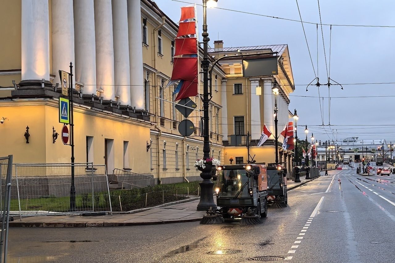 Когда перекрытия сняли, в дело вступила техника, которая помыла и Дворцовую площадь, и набережные, и все прилегающие территории. По проезжей части и тротуарам прошли пылесосы, а недоступные для них места подмели вручную сотрудники дорожного учреждения. Об этом сообщили в Комитете по благоустройству Петербурга.