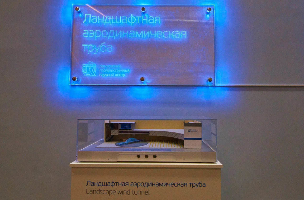 Ландшафтная аэродинамическая труба Крыловского научного центра была построена совместно с АО «Гипростроймост – Санкт-Петербург» в 2013 году и стала первой в России. Руководил работами Сергей Соловьёв. Длина рабочей части трубы 18 метров и ширина – 11. Она состоит из двух уровней. На верхнем располагается установка для создания воздушного потока. На нижнем – рабочая часть, где, собственно, и располагаются макеты объектов, аэродинамику которых необходимо выяснить.