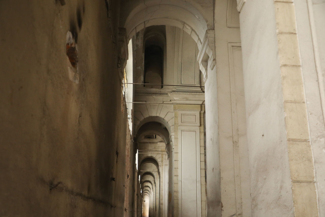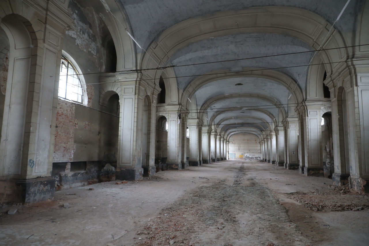В западном корпусе сохранились подлинные кирпичные своды по чугунным балкам авторства Стасова. При этом сами своды были буквально заложены толстой цементной коркой – это сделали во время проведения противоаварийных работ еще в начале 2000-х годов.