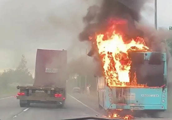 Лазурный автобус в огне заметили на Волхонском шоссе