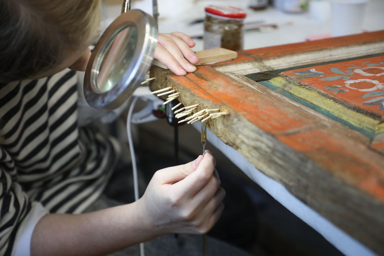 «Работу приходится вести очень деликатно»: студенты-реставраторы восстанавливают рамы икон