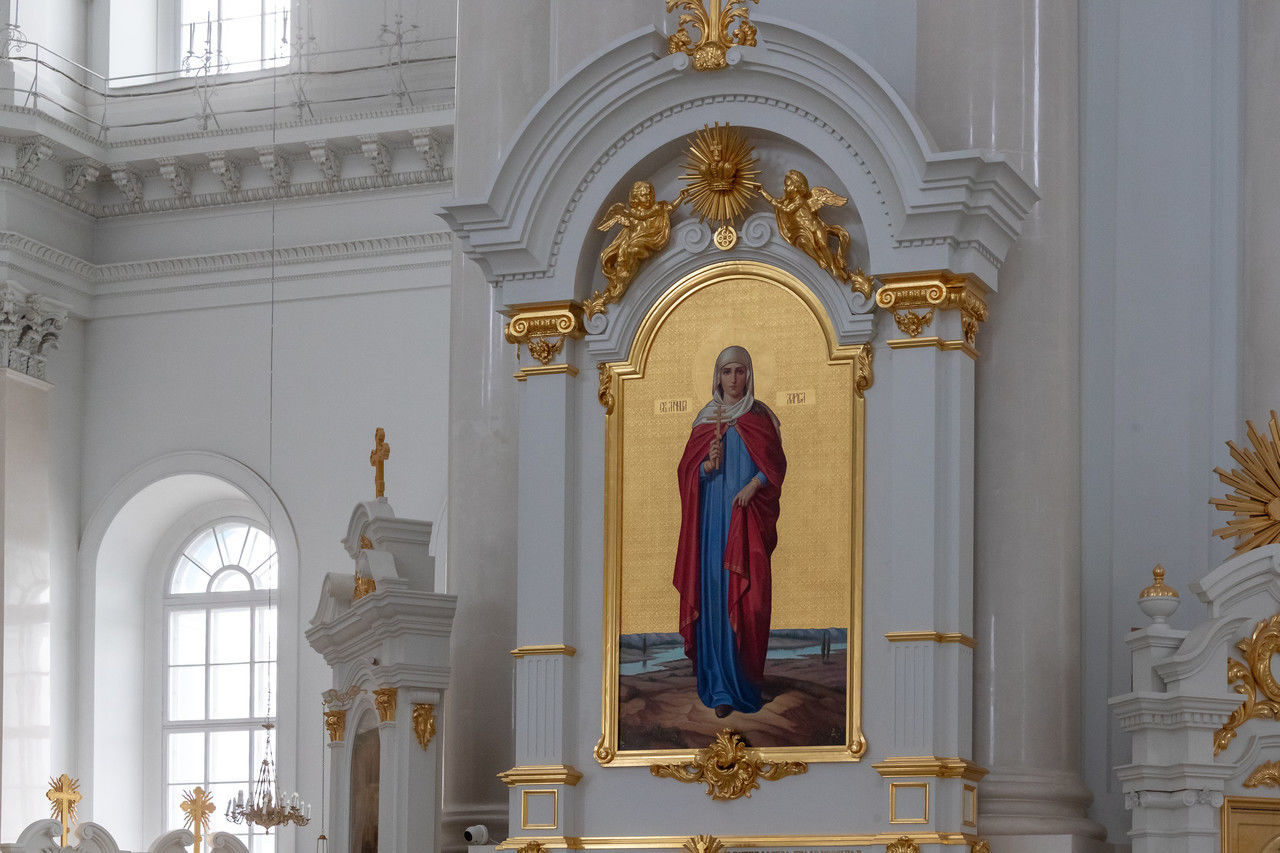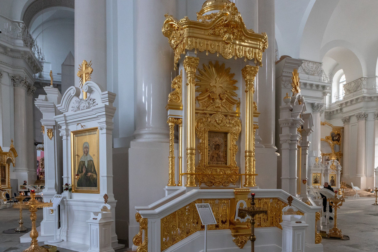 В любом храме иконостас – это его лицо, то место, куда прежде всего обращают свой взор прихожане. Что особенно важно относительно решения общего интерьера Смольного собора – его белизна, воздушность. Исторически стены не были покрыты росписью. Поэтому восстановление иконостасов сегодня имеет особое значение.