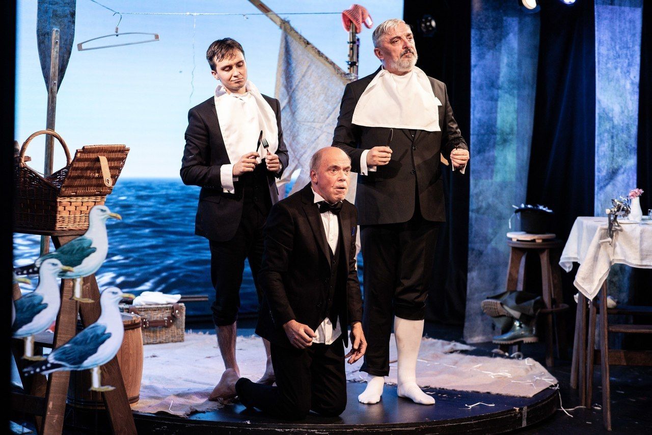 – Чаще всего – интересный сюжет, тонкий юмор, темы, волновавшие автора, актуальность этих тем. А иногда приходит время лирической комедии, когда зрителю нужно именно такое творческое и нежное лекарство для души. Сопереживание через любовь, которое поддержит и вдохновит. Всё чаще в репертуаре появляются спектакли совершенно неожиданных жанров. Магические спектакли и шоу, ушедшие с подмостков в конце девятнадцатого века с появлением кино и телевидения. А недавно состоялась премьера спектакля «Трое на плоту, не считая носорогов» (16+), где соединены две великие пьесы абсурдистского театра. Есть публика, которой требуется драматургия высокого интеллектуального уровня – своего рода «высший пилотаж» и «высшая дегустация». Воспитание и развитие вкуса у зрителя – одна из ключевых задач театра. Мы стремимся разнообразить темы для эстетического диалога с нашей аудиторией.