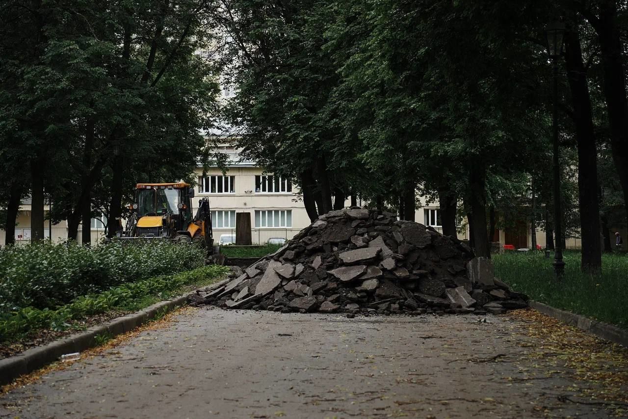 «Сейчас выполняется демонтаж асфальта, выкладка плитки, замена бордюра. Также здесь будет заменен забор, установлена детская площадка, скамейки, высажены новые деревья», – добавил Разумишкин.