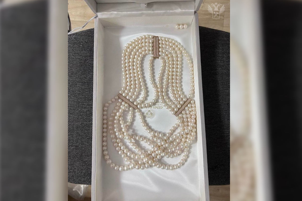 Экспертиза установила, что украшение изготовлено из золота 750 пробы с бриллиантами и 443 культивированными жемчужинами, а его стоимость на внутреннем рынке может превышать 2,5 миллиона рублей.