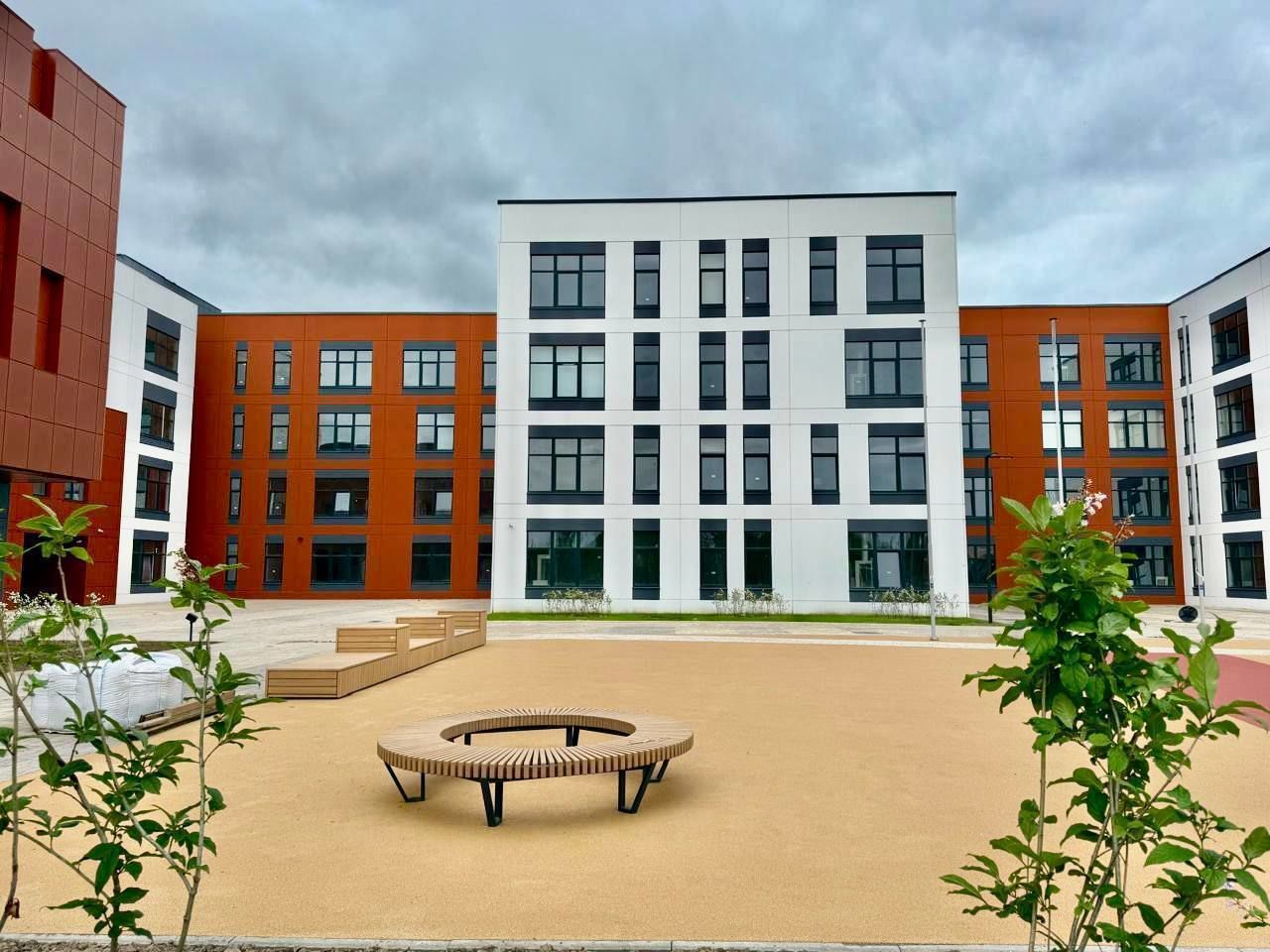 «Для 47 классов – современные кабинеты с интерактивными панелями, актовый зал, студии для творчества и труда, библиотека и кружки, стадион, беговые дорожки, площадки для футбола, волейбола, гимнастики, уличные тренажёры, амфитеатр и зоны отдыха», – говорится в сообщении.