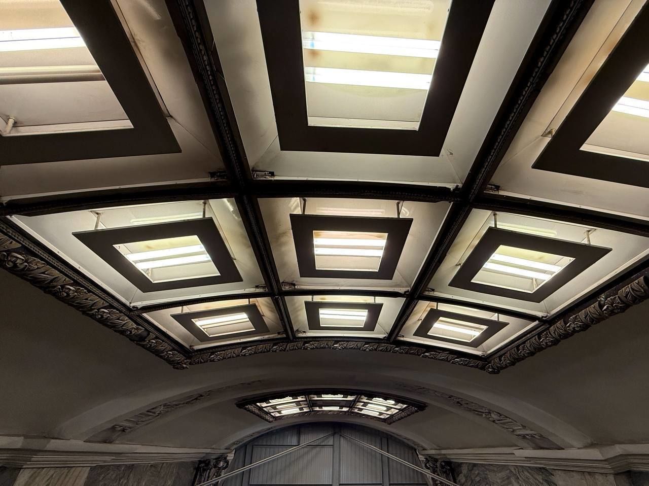 «В центральном зале демонтирована арка и часть торцевой стены, продолжается возведение внутренних конструкций: забетонирована плита перекрытия, идёт армирование лестничного марша», – говорится в сообщении.