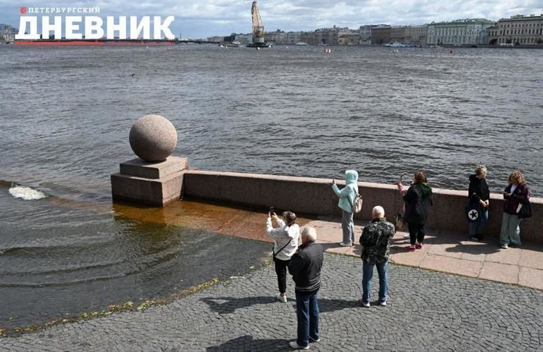 Днем в пятницу, 4 июля, на Стрелке Васильевского острова произошло наводнение, вода вышла из берегов. Об этом сообщил корреспондент «Петербургского дневника».
