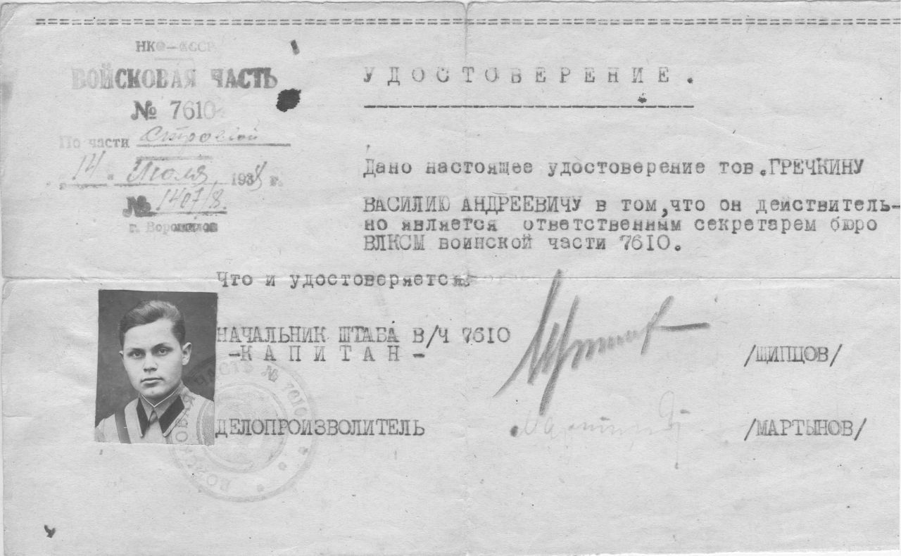 Добавим, что ряд подлинных документов Василия Андреевича Гречкина хранится в музее истории органов госбезопасности в 33-м регионе при УФСБ по Владимирской области, в том числе кремлевская наградная фотография 1938 года,