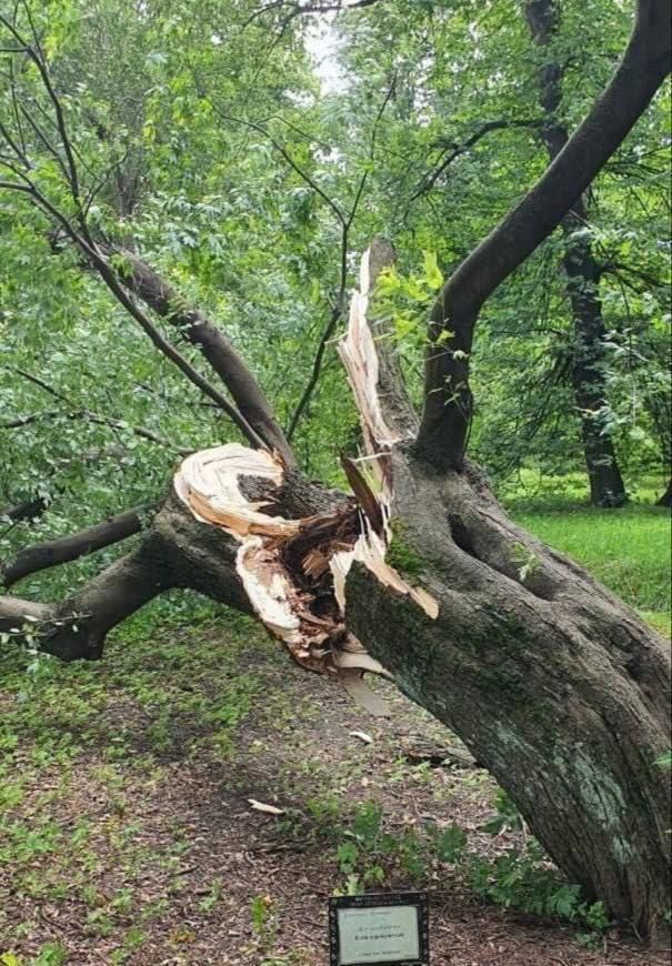 Сильный ураган, царивший сегодня в Петербурге, повалил крупный экземпляр клёна серебристого в Ботаническом саду. Дерево посадили еще до 1934 года. В 1946 году оно уже было в высоту 20 метров.