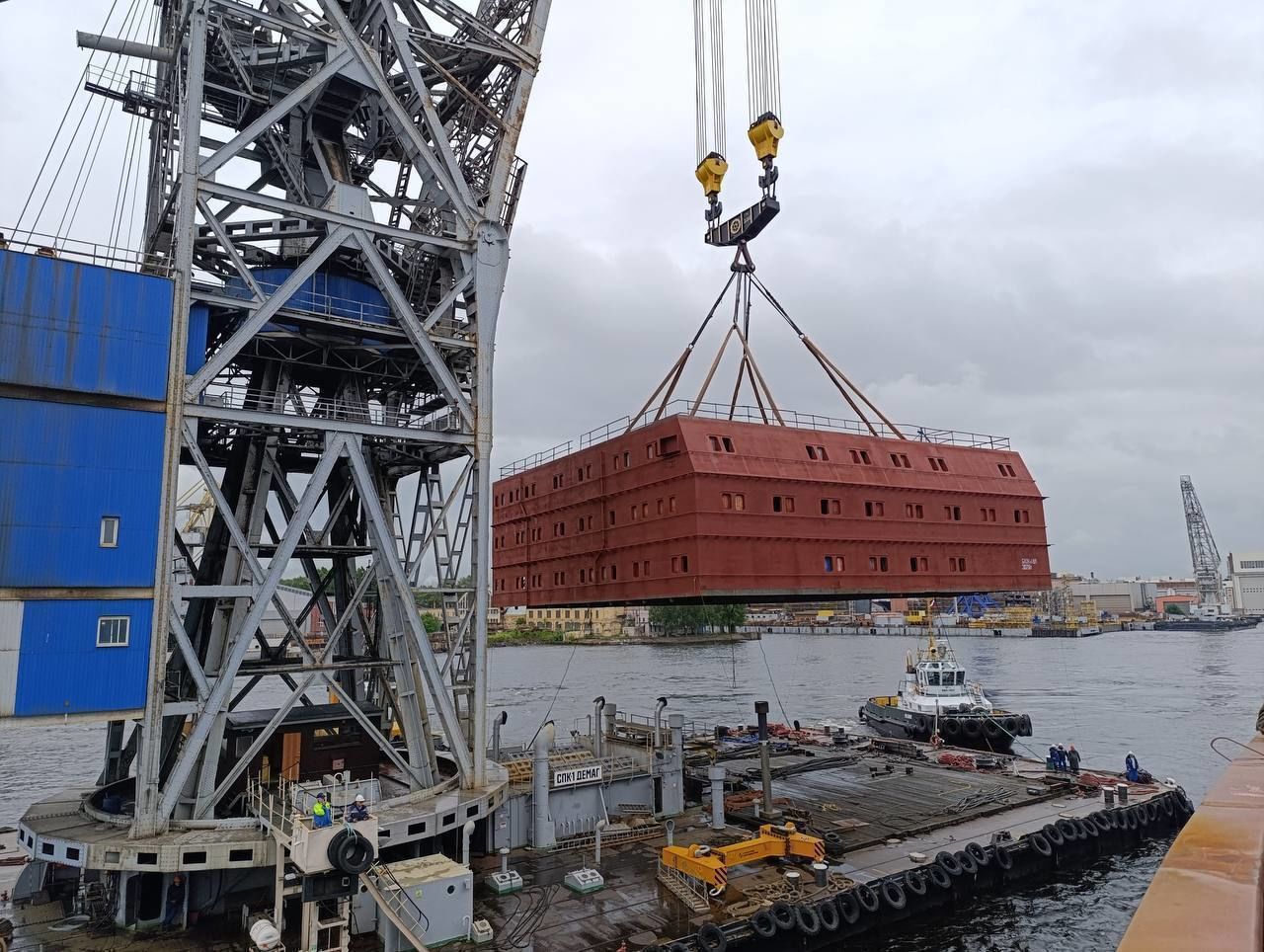 В Петербурге Балтийский завод ОСК установил на атомный ледокол «Чукотка» насыщенный блок секций