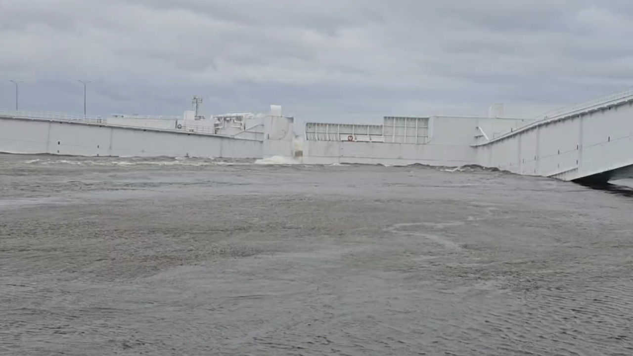 В 18:48 по московскому времени в Петербурге открыли дамбу.