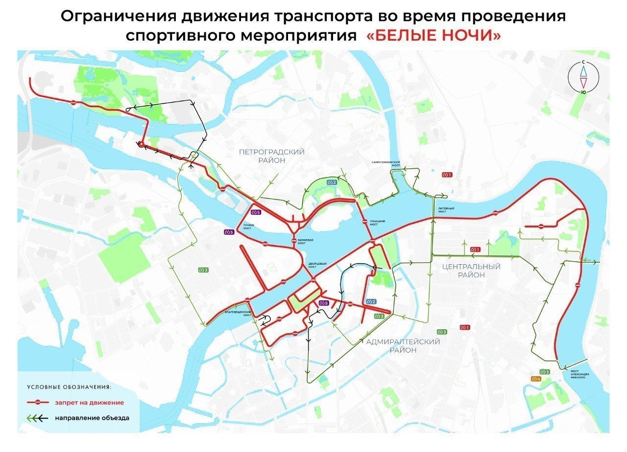 В связи с проведением 5 и 6 июля XXXIV Марафона «Белые ночи» внесли временные изменения в работу наземного транспорта: