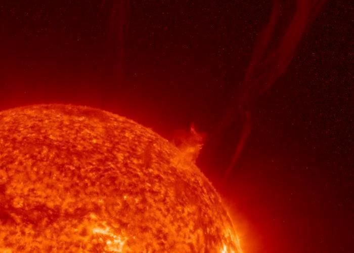 Солнце сегодня между 9 и 14 часами по московскому времени выбросило протуберанец размером более миллиона километров, рассказали в Лаборатории солнечной астрономии ИКИ РАН.