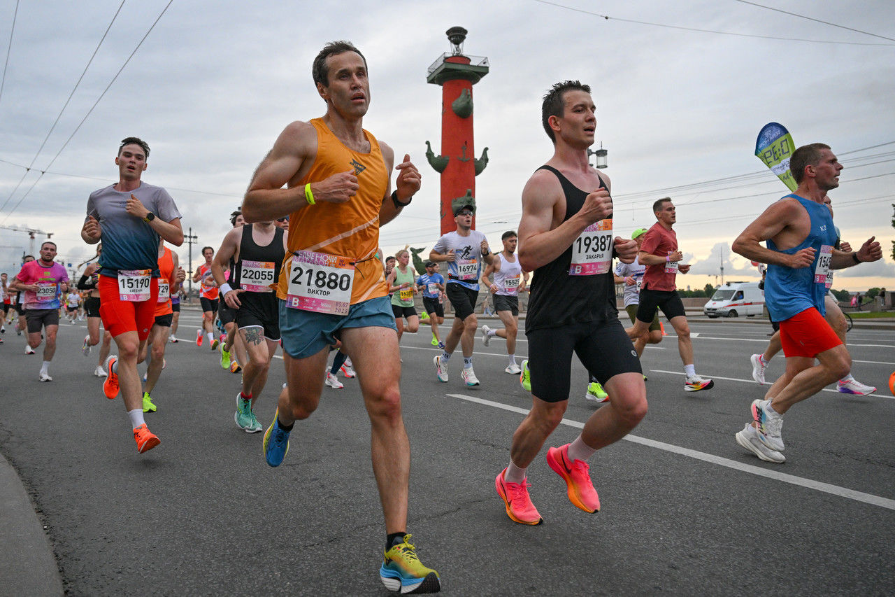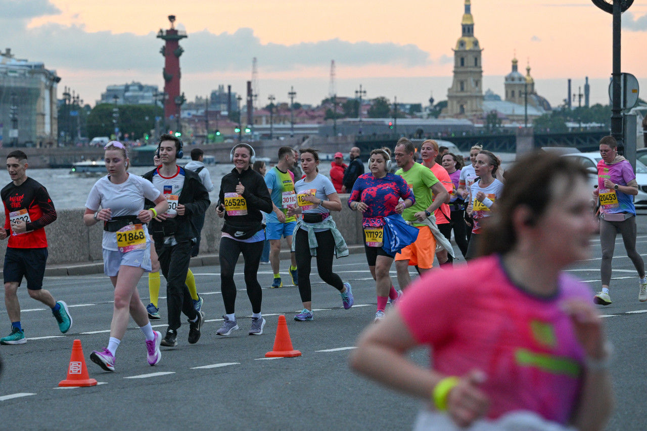 В ночь с 5 на 6 июля в Петербурге в 34-й раз прошел марафон «Белые ночи». Непогода проведению соревнований не помешала.