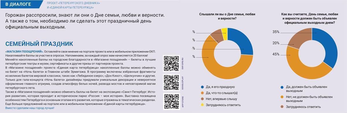 Опрос, проведенный изданием «Петербургский дневник» совместно с порталом «Единая карта петербуржца» (ЕКП), показал, знают ли граждане о Дне семьи, любви и верности.